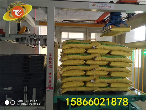 當完成一定數量的排列之后,產品會被推入單層緩沖裝置中;當單層緩沖裝置中的產品達到規定的排數形成單層垛形,就會被送至滑動小車上。完成之后,滑動小車也會上升到相應的高度并沿水平方向向碼垛位置滑動。像這樣循環往復的進行直至達到程序規定的層數,碼垛機就會將碼垛好的產品送入指定位置。