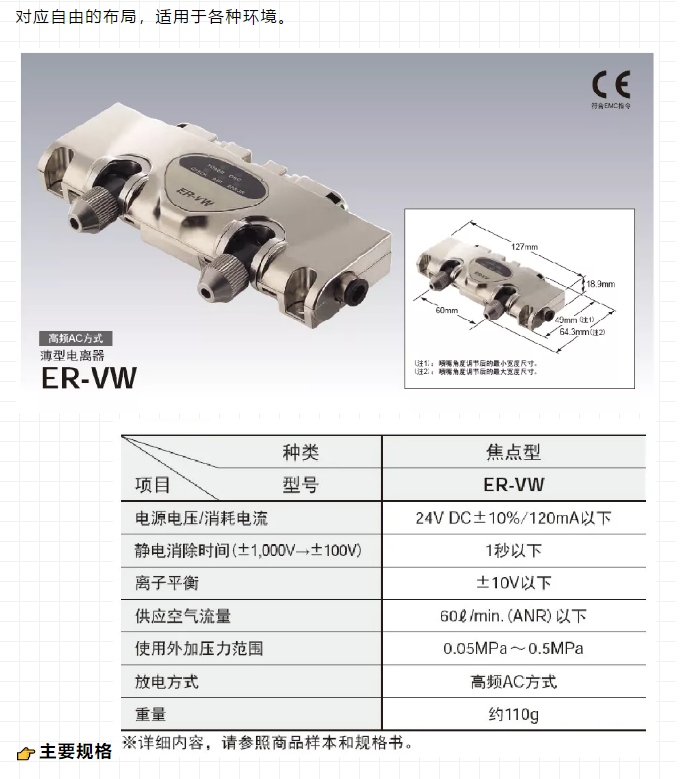 卓越的離子平衡和強(qiáng)力除塵,豐富多彩的噴嘴,可對應(yīng)非常廣泛的應(yīng)用。