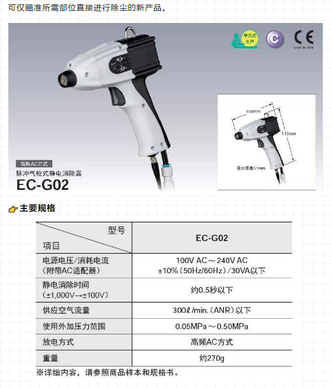 可利用脈沖離子空氣一次性進(jìn)行除塵的氣槍型產(chǎn)品