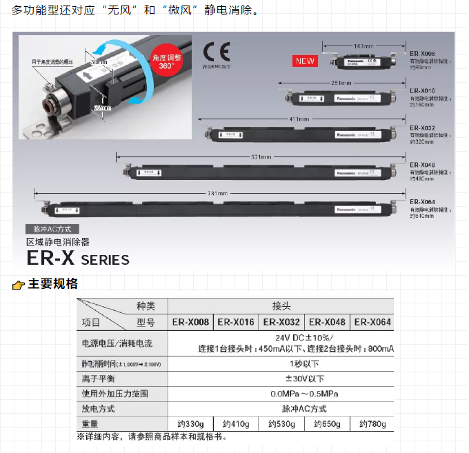 針對上述故障和危害,通過消除工件和制造工序的靜電即可解決和避免,松下的靜電消除器可在生產(chǎn)現(xiàn)場有效地進(jìn)行“靜電消除”。根據(jù)用途的不同,靜電消除器(靜電去除器及除電器)可分為4種,分別應(yīng)用在除電、除塵的工件和作業(yè)。