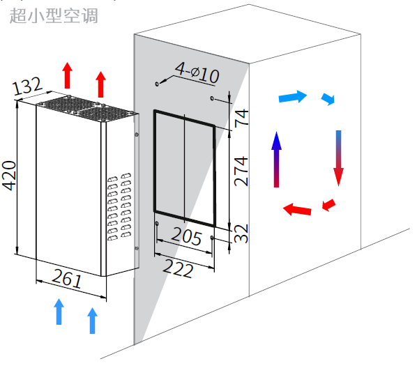 □ 外掛式安裝,外觀精巧,安裝靈活;凸出型內部循環風向可根據用戶要求選擇出風方式;