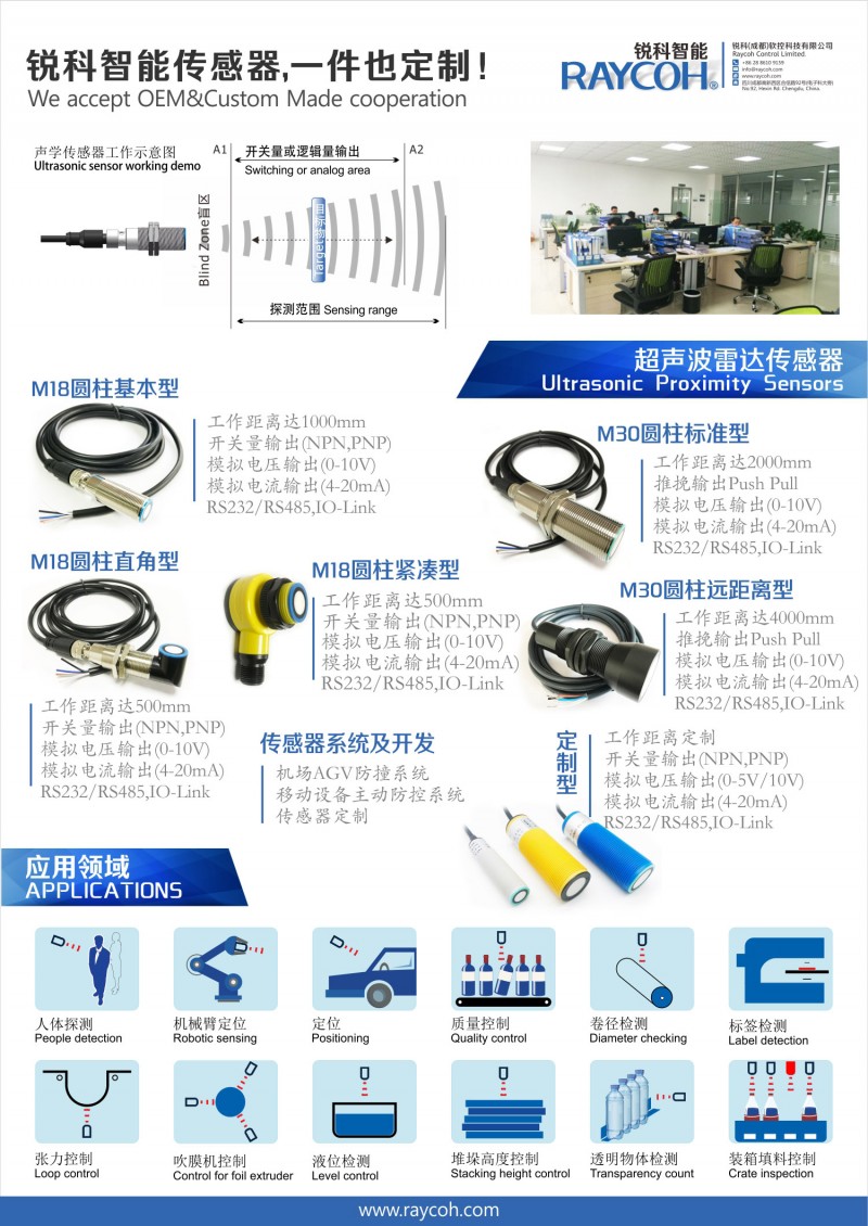 超聲波傳感器,移動設備防撞系統, 料位無接觸檢測,超聲波傳感器,傳感器,位移傳感...