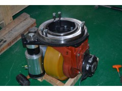 驅動部分采用直流電機和傳動箱組合,反對稱安裝方式。這種方式可以在使輪對同軸,提供較大動力(通常電機外形尺寸和功率成一定比例)的情況下,大大縮短輪距,節(jié)約空間,以使機器人體積小型化。由于采用這種安裝方式,電機的選擇就可比較廣泛,齒輪變速箱的作用可以提升扭矩,減小轉速,也可以利用之間的摩擦自鎖在需要停止時起到剎車作用,同時延長軸距以滿足輪對安裝需要。